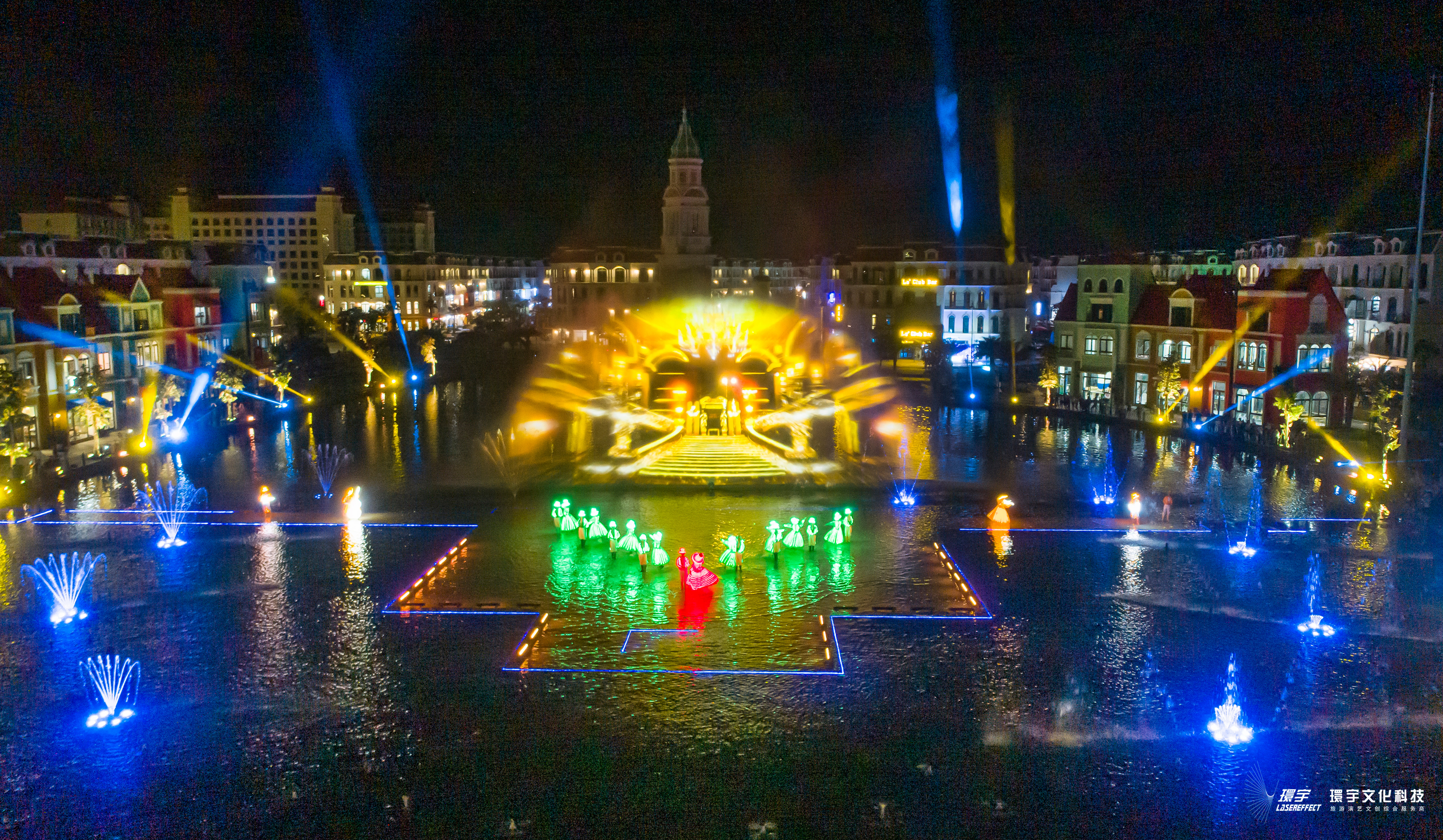 On the largest island in Vietnam, Đảo Phú Quốc, a large-scale themed creative water show "the Color of Venice" is produced by Vingroup and collaborated with Vanyee and the top Vietnamese director Việt Tú team. The show is set in the late Renaissance art center of Venice, Italy, and exudes a strong European classical atmosphere. The entire performance is divided into six chapters, the creative team utilizes multimedia artistic techniques such as sound, light, water and fire, as well as meticulously designed stage art effects to tell a poignant, moving and tumultuous love story. The water show adopts multiple world leading technologies and special effects, bringing unprecedented artistic experiences to the audience, such as the giant machinery fan-shaped projection screen inspired by European palace folding fans. This "giant machinery fan" weighing several tons not only needs to be hidden in the lake bed, but also needs to prevent these devices from being corroded by seawater. Vanyee uses lightweight alloy materials to make the skeleton of the folding fan, and innovatively realizes the opening and closing principle of the real folding fan. At the same time, the design with a maximum opening of 162 ° also breaks the overall circular effect of the projection screen and water reflection, highlighting the shape of the fan and matching it better with the laser and water shapes of the fan. Since its performance, this exquisite and unparalleled performance work has not only innovated the night watching experience in Vietnam, but also received praise from people from all walks of life in Vietnam.