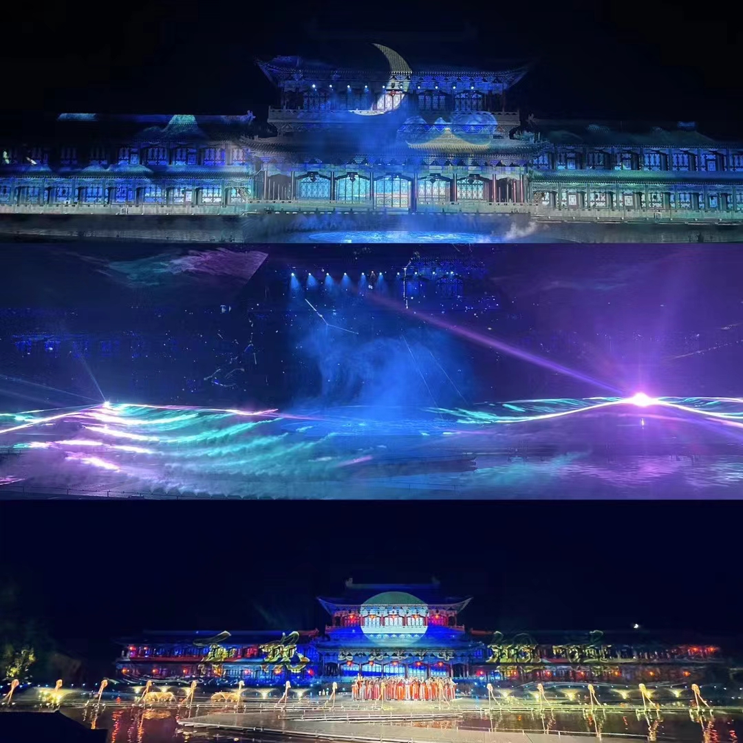As night falls, stars dot the sky, and the Milky Way stretches across the horizon, providing an endless backdrop for this romantic night. On the Chinese stage, the interweaving of lighting and moonlight creates a classical and dreamlike atmosphere. In the center of the stage, decorated with high-tech digital multimedia screens, carved window frames, and quaint pavilions, a lively music carnival was staged for the audience.