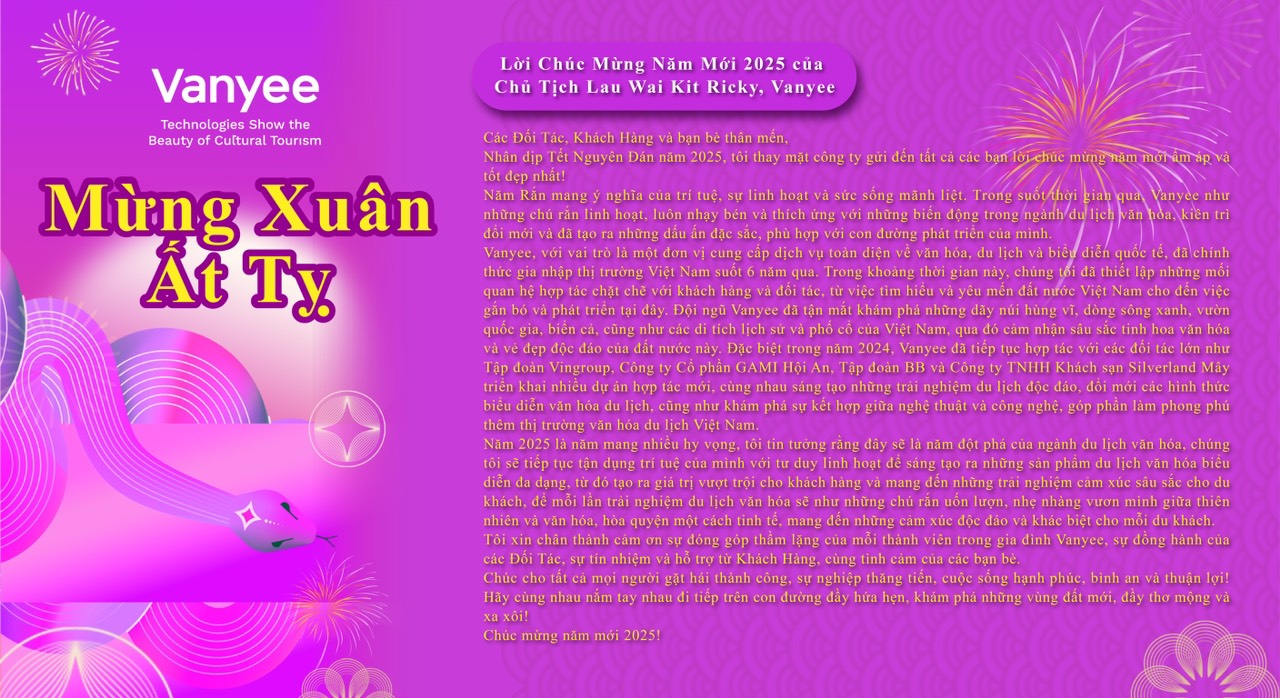 The Year of the Snake symbolizes wisdom, flexibility, and vitality. Over the past time, Vanyee has been like a flexible snake, always sharp and adaptable to the changes in the cultural tourism industry. We have persistently innovated and made distinctive marks, aligning with our path of development.